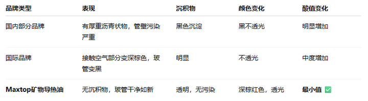 Maxtop礦物導熱油用實證說話,以實力贏得信賴。我們真誠歡迎全球?qū)嵊椭圃焐桃黄饏⑴c熱穩(wěn)定性對比實驗,在高溫氧化環(huán)境下同臺比拼!